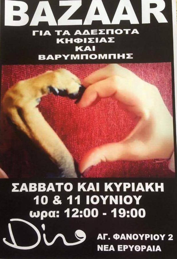 Διήμερο bazaar για τα αδέσποτα του Δήμο Κηφισιάς Nέας Ερυθραίας Εκάλης και της Βαρυμπόμπης!!!