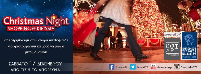 Μην ξεχνάτε κρατάτε τις αποδείξεις σας μετά τις αγορές απο τα καταστήματα που συμμετέχουν στο Xmas Night Shopping @Kifissia και τις επιδεικνύετε στο Love Radio 97,5 Athens για να μπείτε στην κλήρωση για τα μεγάλα μας δώρα!